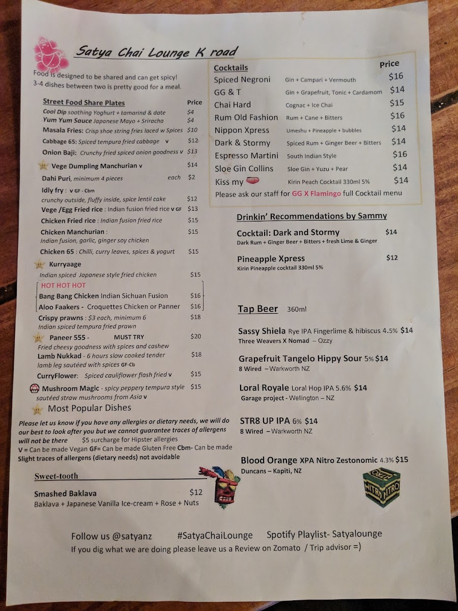 Located at 271 Karangahape Road in the vibrant heart of Auckland, Satya Chai Lounge delivers an eclectic dining experience that beautifully marries Indian and Middle Eastern flavors. This cozy space, often buzzing with energy, has garnered rave reviews for its thoughtfully curated menu, featuring standout items like the Hot & Numbing Buttermilk Fried Chicken and delectable Crispy Eggplant adorned with Szechuan pepper.