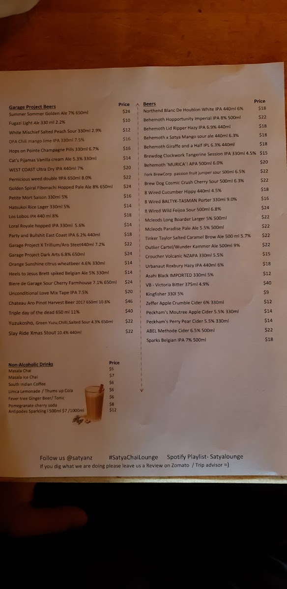 Introducing the Menu at Satya Chai Lounge
